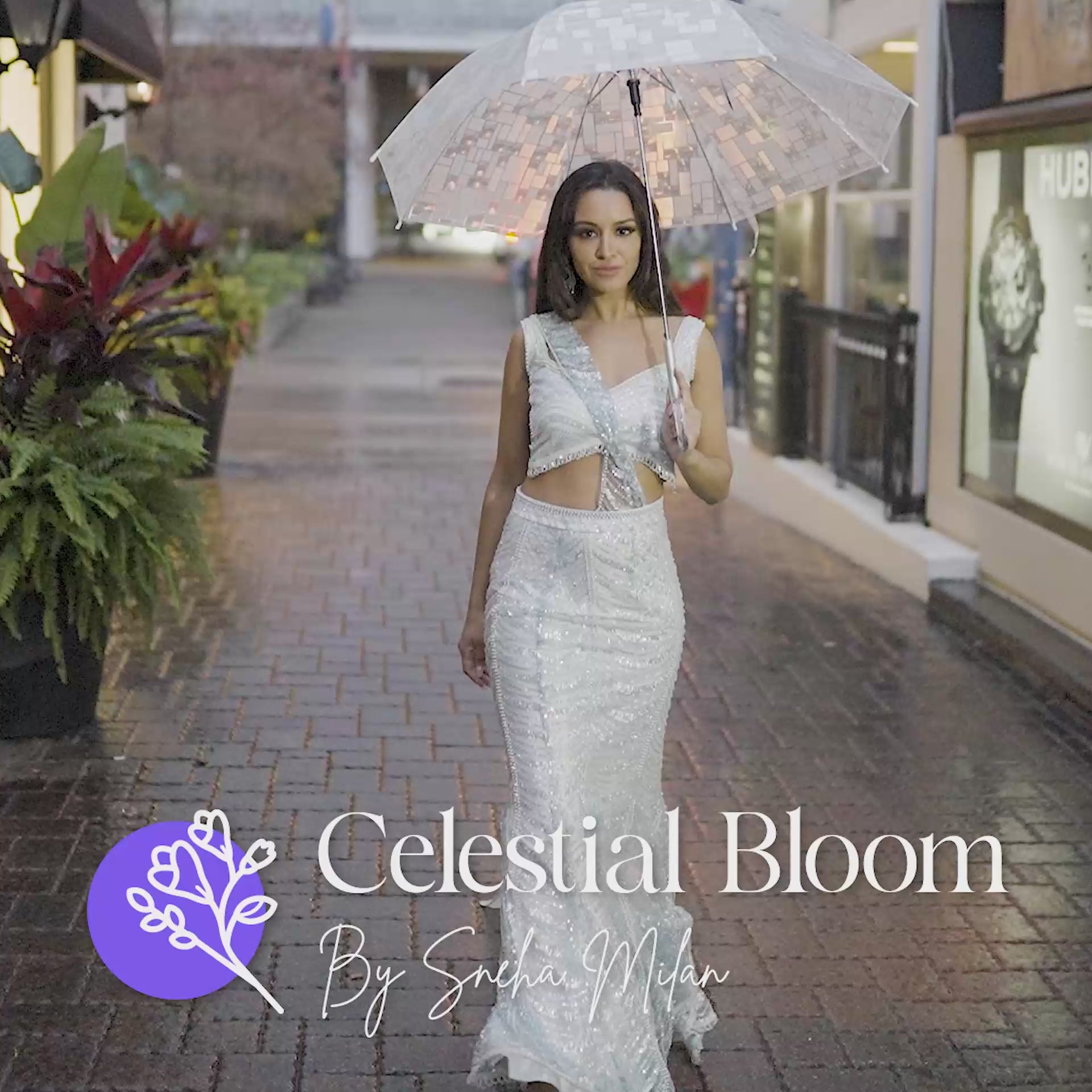 Embrace celestial beauty with this icy White - blue co-ord set, adorned with shimmering sequins and a sleek cut-out design. Ideal for red-carpet moments or a glamorous evening, it ensures you dazzle like the Moon.